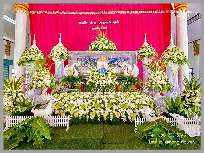 ชุดดอกไม้สีขาวประดับหน้าหีบ ดอกไม้หน้าศพสีขาว ดอกไม้หน้าหีบสีขาว ดอกไม้สีขาวประดับงานศพ สวยหรู ราคาประหยัด แบบที่ 9